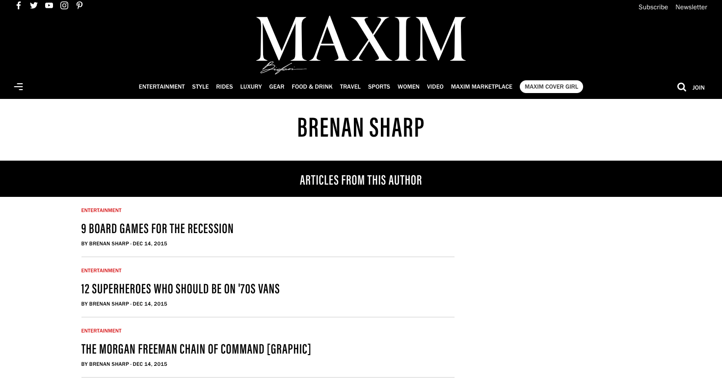 In addition to the role of Design Director, I’ve served as Acting Managing Editor and Contributing Editor, and also written for several popular websites online, including Car & Driverthe ABA Journal, Music City News,  Maxim and the Burnout at Racing Junk. Thanks to link-rot, some of my work can no longer be viewed in its entirety online, if at all. I’ve linked to the ones which still work in the first sentence. Click through the gallery below to see screen captures of my previous work.